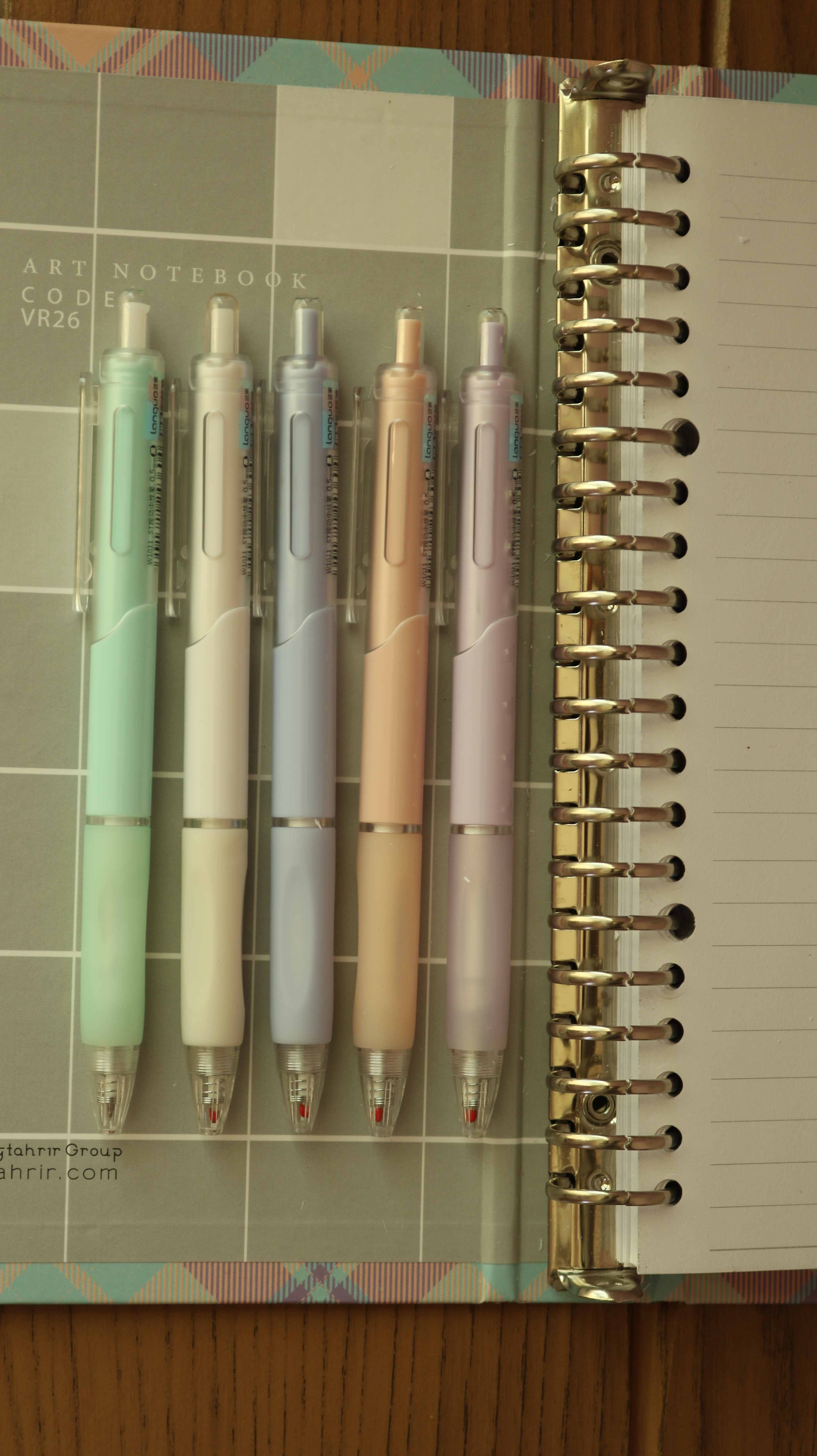 خودکار پاستلی جوهرمشکی 5 عدد در بسته بسیار روان پینترستی رنگ بدنه در 5 رنگ پاستلی وملایم ضخامت نوک 0.5 میل